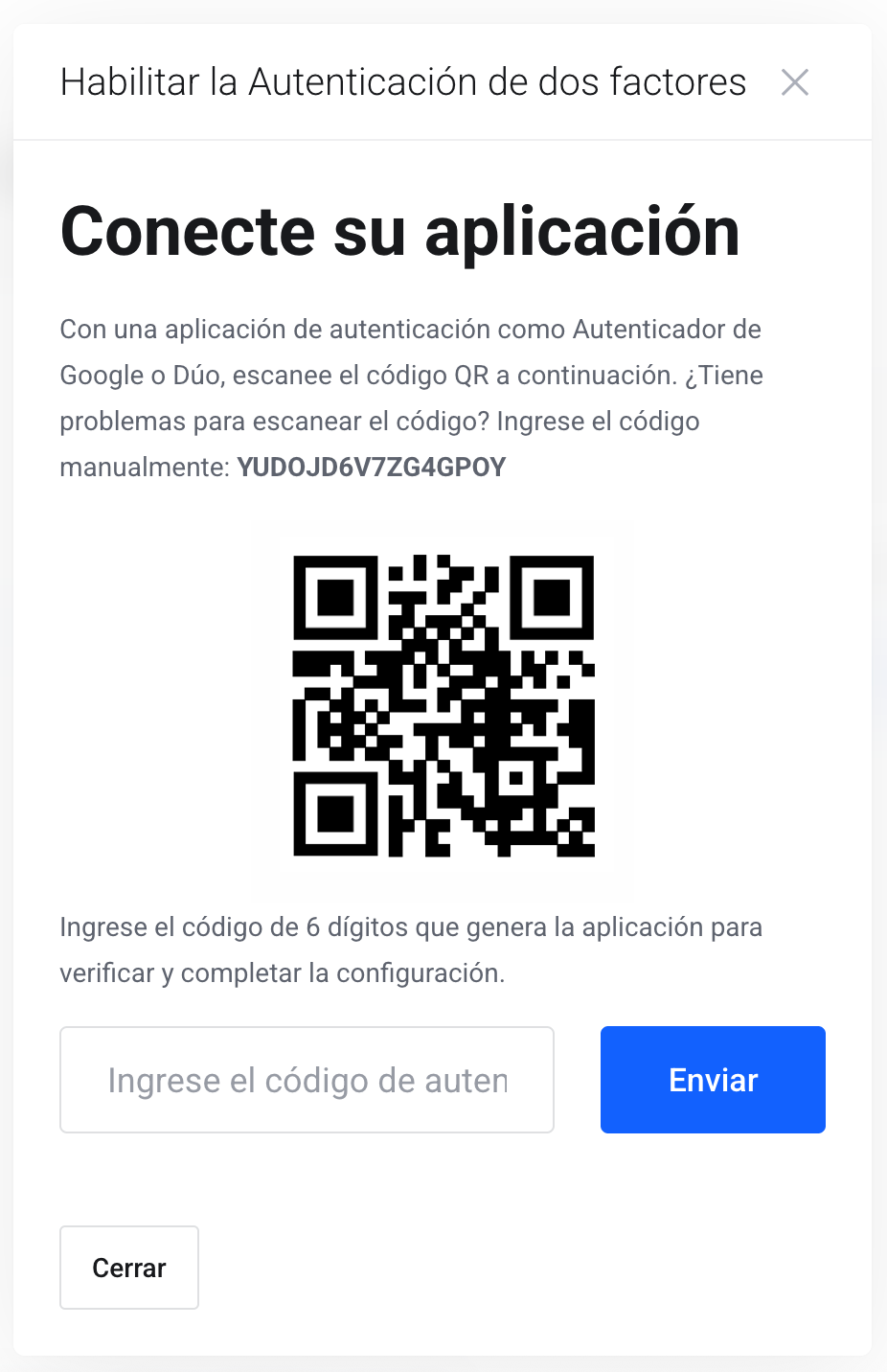 - Ingresa este código en el campo "Ingrese el código de autenticación"