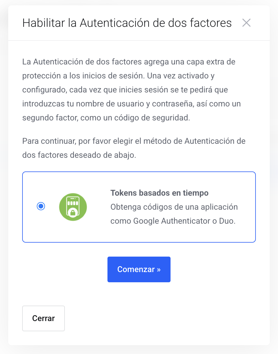 - Aparecerá una ventana con el método "Tokens basados en tiempo"